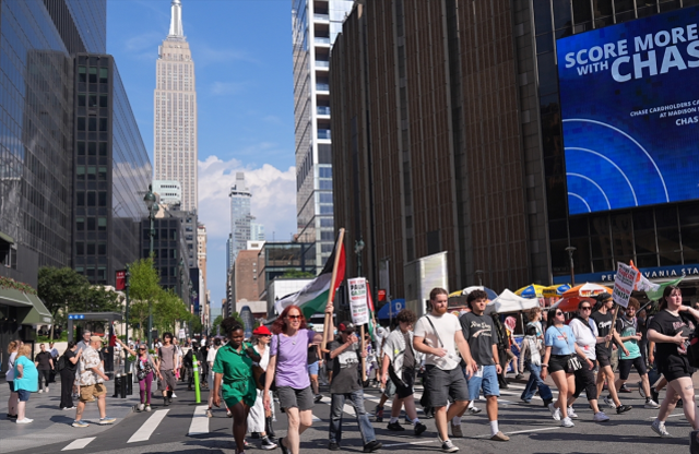 ABD’nin New York kentinde Filistin destekçileri, İsrail‘in Gazze ve İran’a yönelik akınlarını ve Trump idaresinin savaşa müdahil olmasını protesto etmek emeliyle Union Meydanı’nda bir ortaya gelerek Manhattan’daki büyük tren istasyonu Moynihan Tren Salonu’na yürüdü. Trump ve İsrail yanlısı bir küme, protesto sırasında Filistin destekçileriyle karşı karşıya geldi.